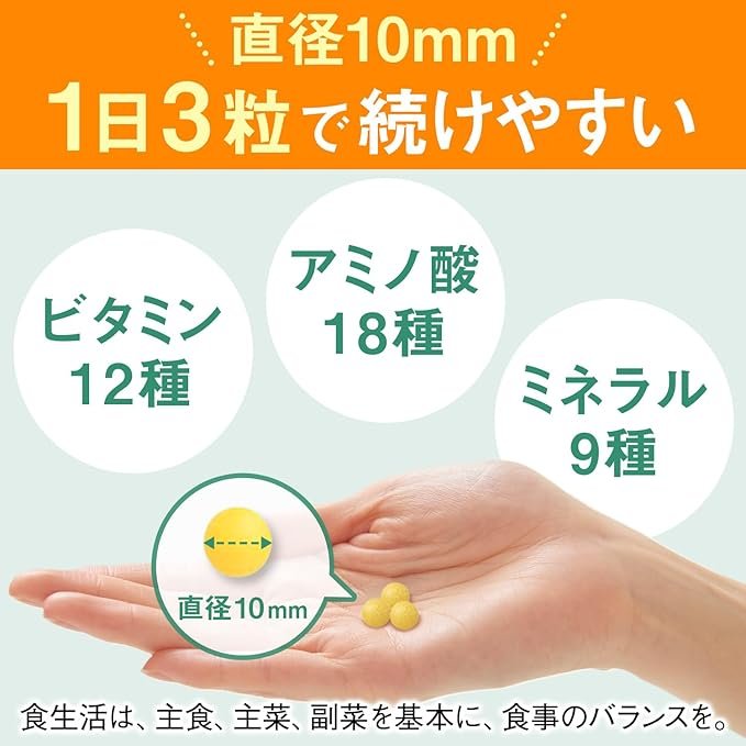 1日3粒を目安に、水またはお湯とともにお召し上がりください。